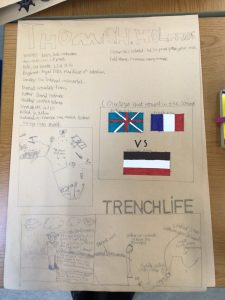 Part of the challenge was to learn about The Somme in particular as we worked alongside a primary class from Amiens in France to carry out our learning. We learned a French poem and spoke French to the class online to share our learning. They recited a poem back to us and it was great fun.